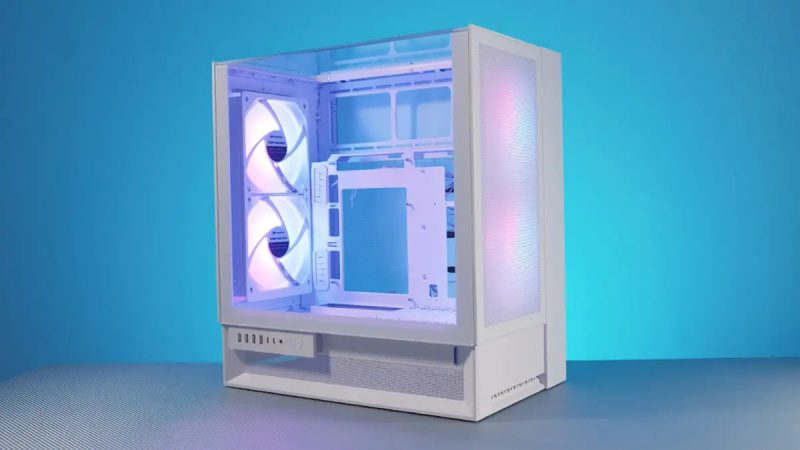 Перш за все відмічаю, що так – це корпус з обертом на чверть кола, або 90°. Це дає що? Що відеокарта не висить, навантажуючи слот PCIe вагою в декілька кг, а дивиться відео-кабелями вниз. І так, це сильно спрощує процес встановлення.