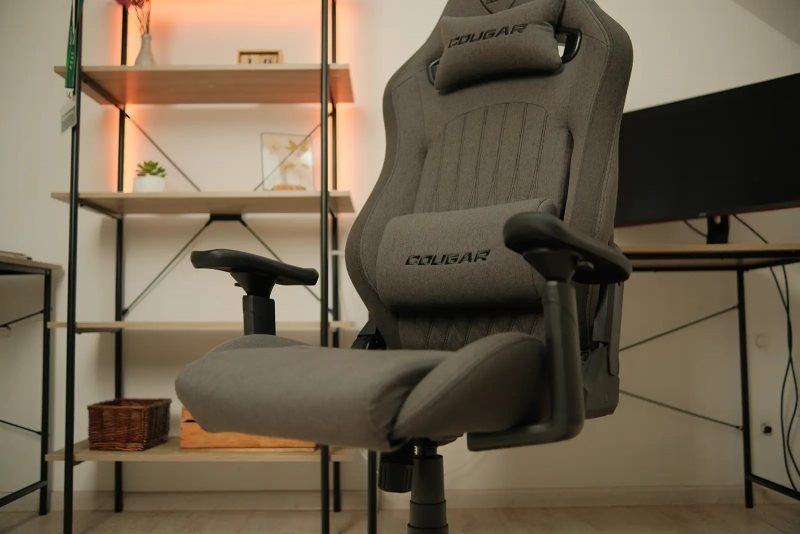 Cougar EXPLORE ROYAL представлене у різних варіантах кольору і оббивки. У нас версія ROYAL GRAY F на базі дихаючої тканини темно-сірого кольору. До речі, літера F у назві моделі означає Fabric і вказує саме на тканинну оббивку. В даній модифікації тканина імітує льон і дуже приємна на дотик. Її не так легко мити, як поверхню із еко-шкіри, натомість таке покриття більш довговічне, адже навіть якісна еко-шкіра з часом лущиться. Втім, вставки з посиленого матеріалу по боках тут не завадили би.