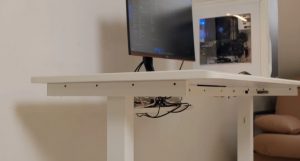 Перше враження від столу — масивність і стабільність. Товста стільниця з МДФ високої щільності додає відчуття монолітності. Конструкція не створює враження «полегшеної» чи компромісної. Навіть без навантаження стіл стоїть максимально впевнено, без тремтіння чи хитання. Лише на максимальній висоті можна відчути незначний люфт, який є типовим для конструкцій такого типу, але він не впливає на комфорт використання.