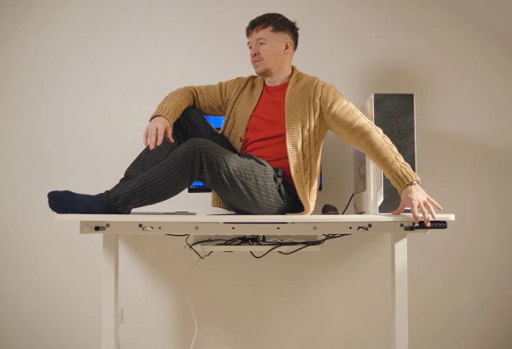 Перше враження від столу — масивність і стабільність. Товста стільниця з МДФ високої щільності додає відчуття монолітності. Конструкція не створює враження «полегшеної» чи компромісної. Навіть без навантаження стіл стоїть максимально впевнено, без тремтіння чи хитання. Лише на максимальній висоті можна відчути незначний люфт, який є типовим для конструкцій такого типу, але він не впливає на комфорт використання.